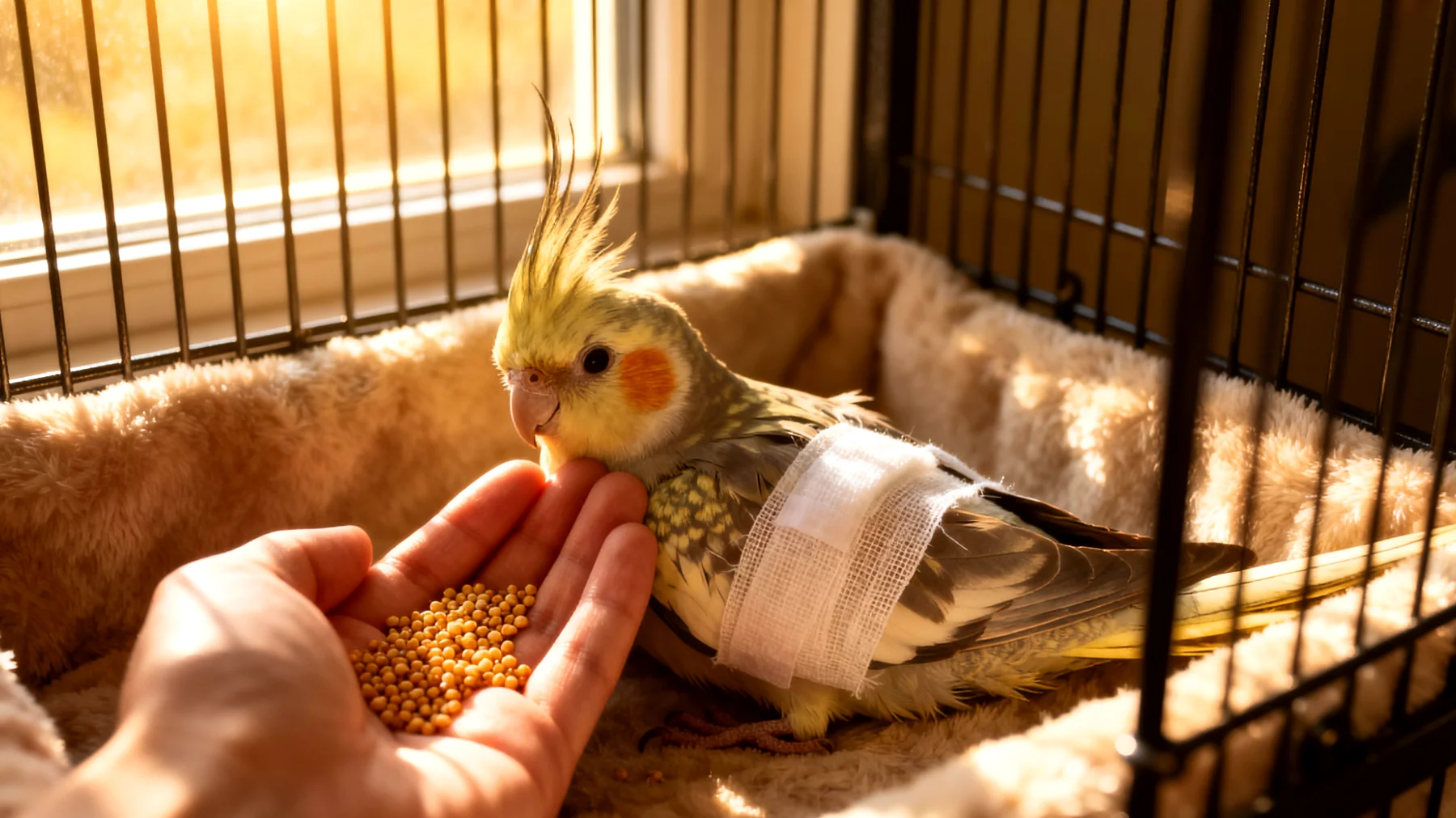 Die ersten 12 bis 24 Stunden gelten als die kritischste Phase, in der der Körper die Narkose abbaut und mit dem Operationstrauma fertig werden muss. In dieser Zeit empfiehlt sich ein ruhiger, abgedunkelter Käfigbereich ohne Zugluft. Die Sitzstangen sollten tiefer positioniert werden, um Stürze zu vermeiden, falls der Vogel noch wackelig auf den Beinen ist. Spielzeug, das zu wilden Flugmanövern animiert, wandert temporär aus dem Käfig. Die Gesamtheilungsphase erstreckt sich über zwei bis drei Wochen, wobei die intensivste Betreuung in der ersten Woche stattfindet.